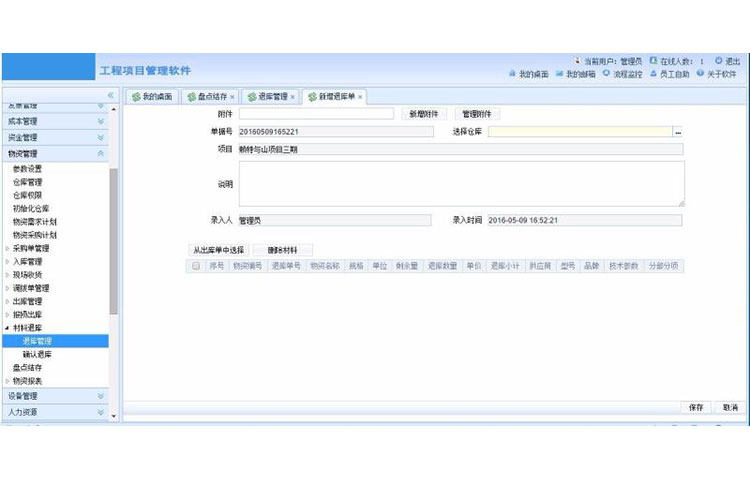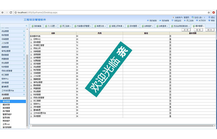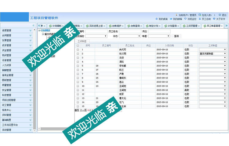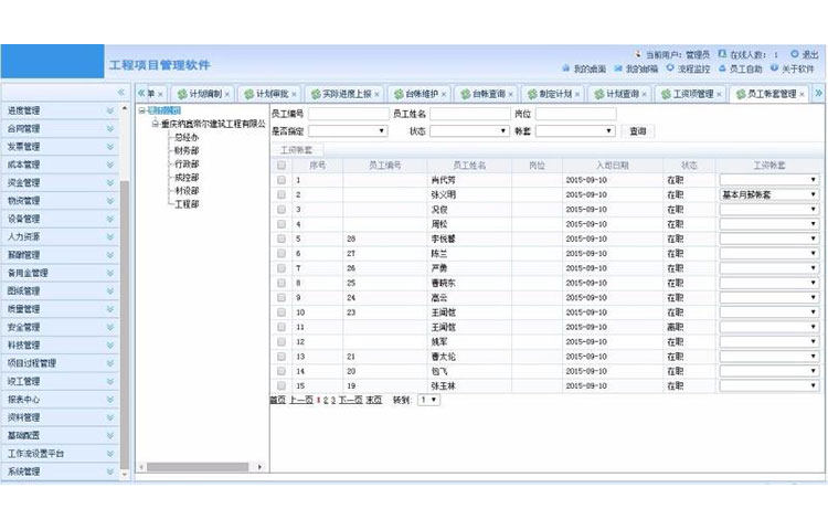 7.合同管理 8.发票管理 9.成本管理 10资金管理 11.物资管理 12.设备管理
