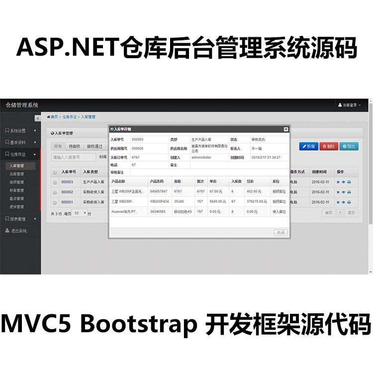 该程序大部分使用于生产制造厂,其中结合了制造厂的采购,销售,生产等. 开源部分是仓库系统后台管理系统, 在给客户实施的过程中利用到了很多硬件设备, 设计到Wince系统,Android系统等PDA设备,各种打印机,条码打印机,感应设备等,而且这些可能在整个项目中占据主导,而后台管理系统只是辅助作用的。 该程序使用的.NET MVC开发,大量使用到了jQuery,以及Bootstrap。 数据库使用了SQL Server