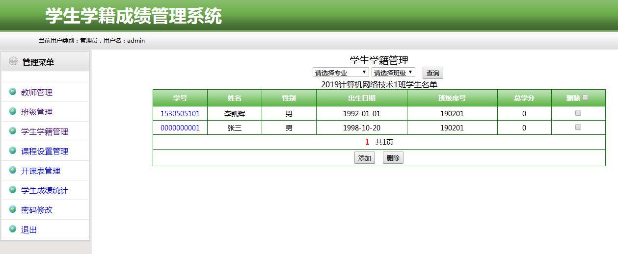 3. 【学生学籍管理】 对各班学生的学籍进行查、增、删、改。