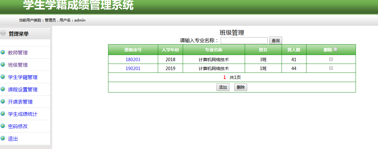2. 【班级管理】 对班级信息进行查、增、删、改。