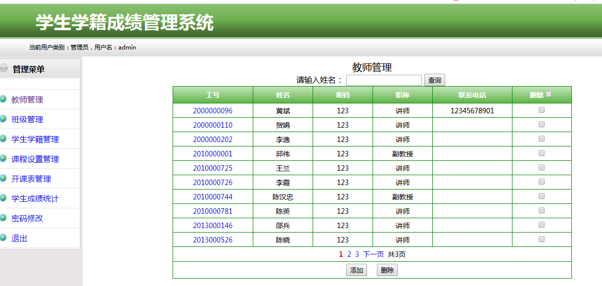 1. 【教师管理】 对教师信息进行查、增、删、改。