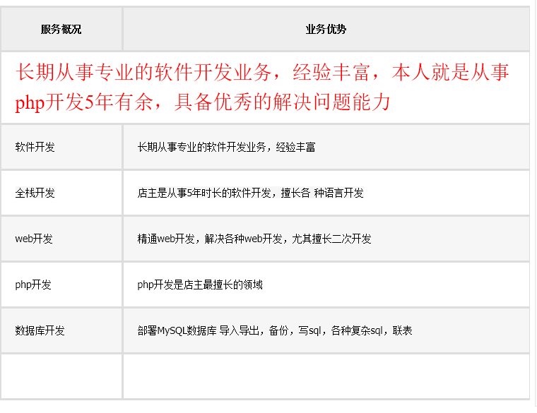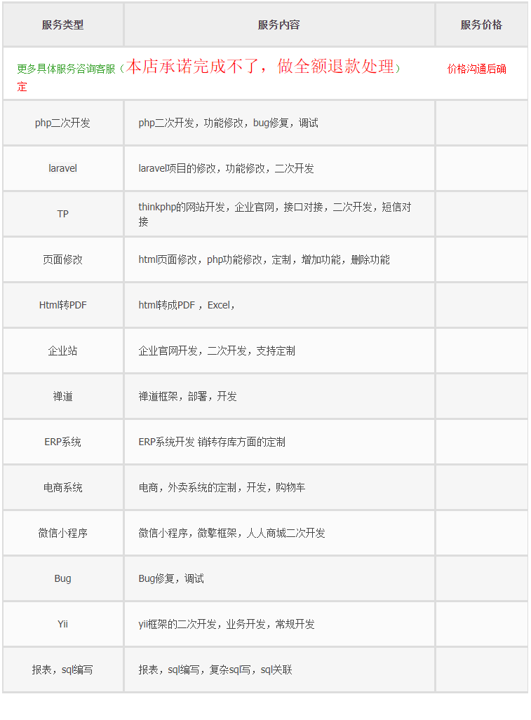 - 服务范围:需求范围内,我搭建的环境,我产生的bug免费修复。增加或变更需求的,双方沟通一致后,另行下单交易。