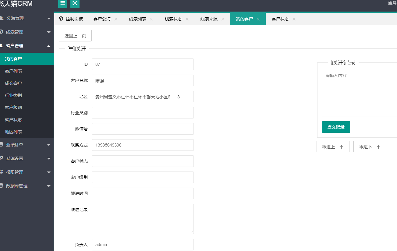 电脑+手机:http://crm1.ftmao.cn/账号:admin 密码:admin