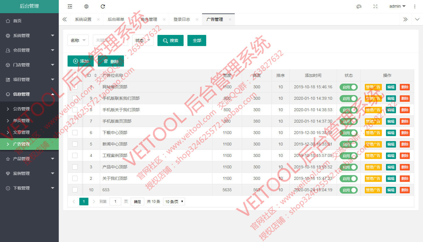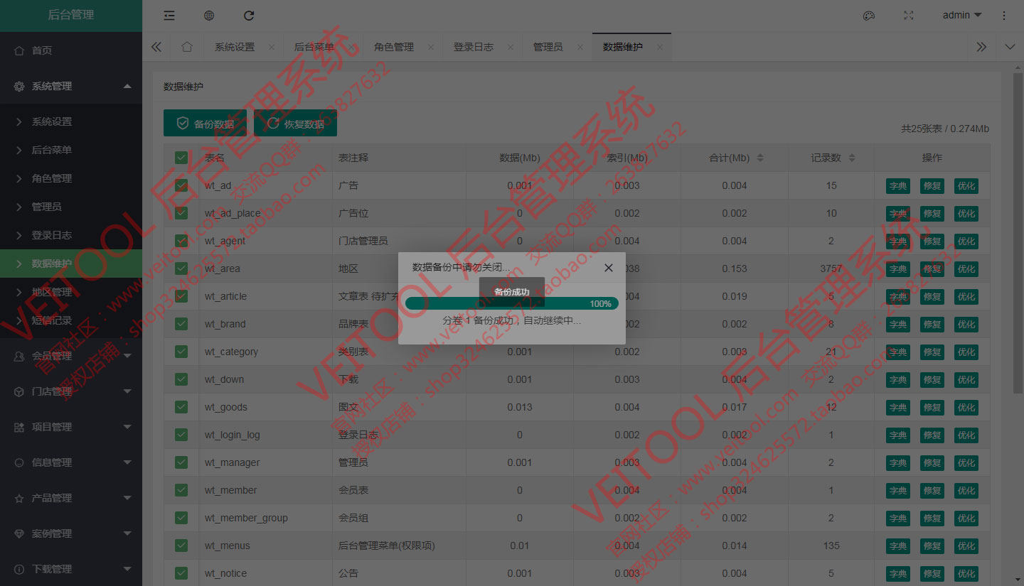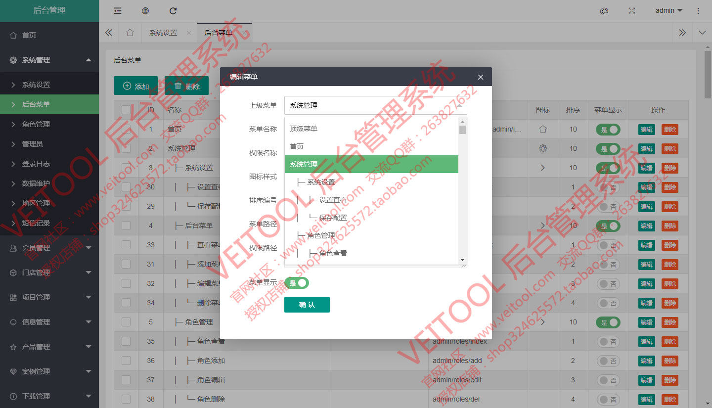 Veitool PHP后台内容管理系统:基于ThinkPHP5.1.41+Layui2.6.8(单页异步加载模式)架构设计。自主程序开发源码,逻辑清晰、界面美观、安全稳定。完善的权限机制,可控制到具体的细节操作权限配置,适用于企业网站、以及用于其他管理系统的二次开发扩展。一次购买,永久使用,安全、稳定、快捷。可接受功能定制,定制费用另行商议。后台入口地址可变。