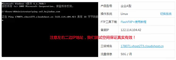 http://ce2.hzjiudao.com 企业A型(3G 空间容量 / 300M 数据库容量 / 2M 带宽 / 50G 流量 / 绑定域名个数 15个)