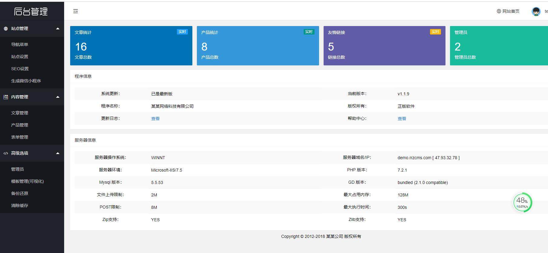 演示地址:http://demoall.rrzcms.com/80/ 复制到浏览器打开