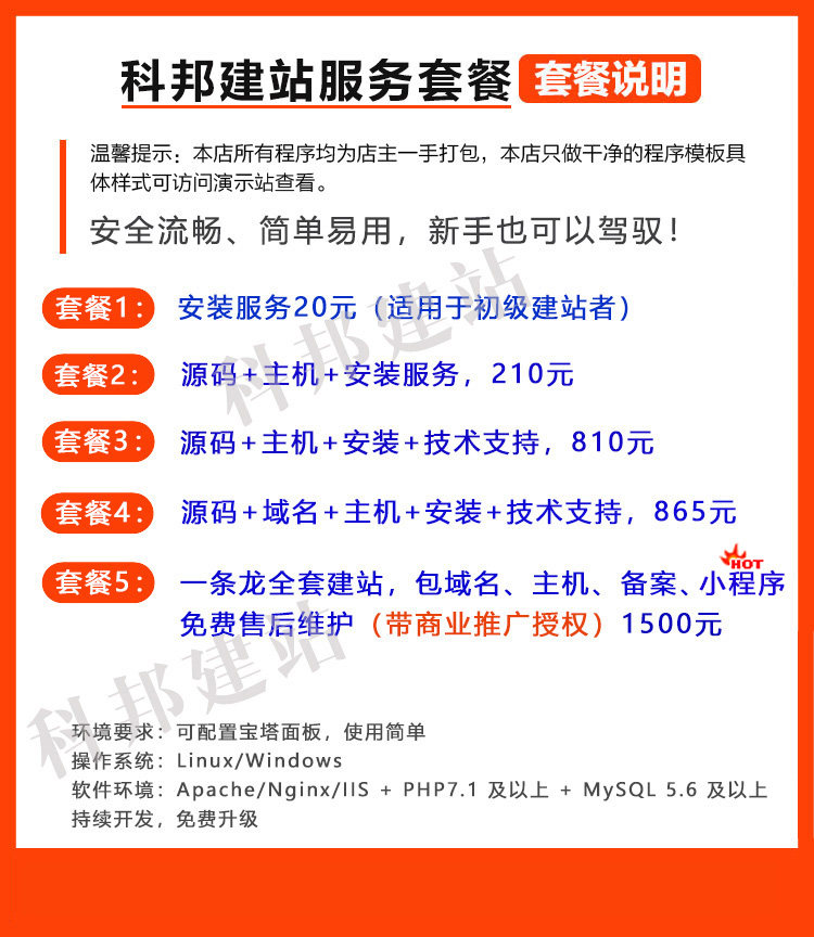 要求php7+,全开源,云服务器可以配宝塔使用。