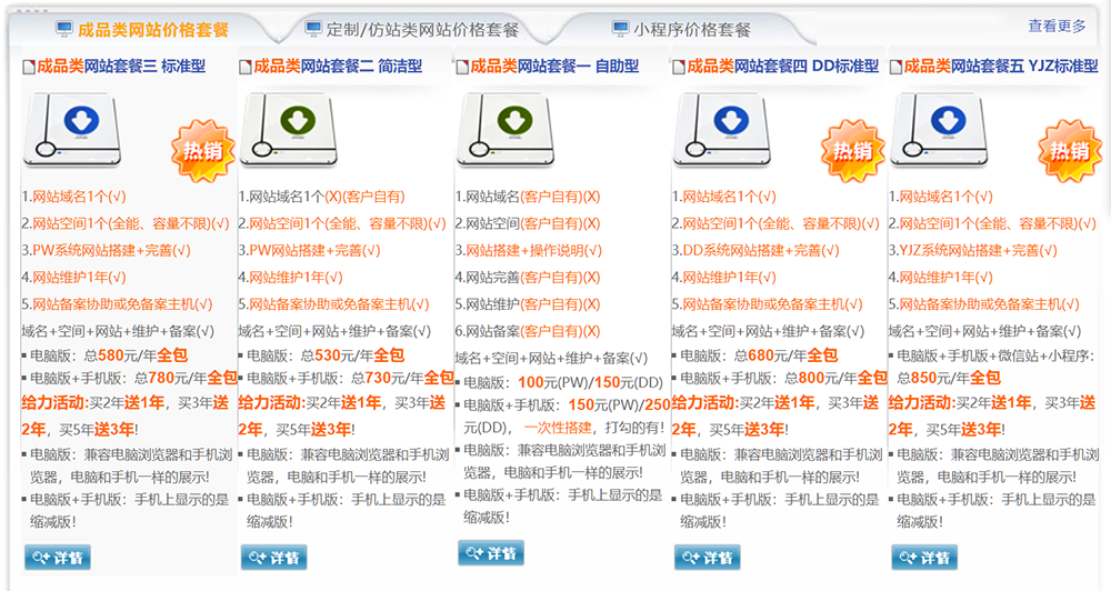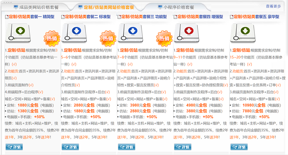 更多套餐详情查看:http://www.wzjs8.cn 价格套餐、模板展示、公司案例、建站流程等